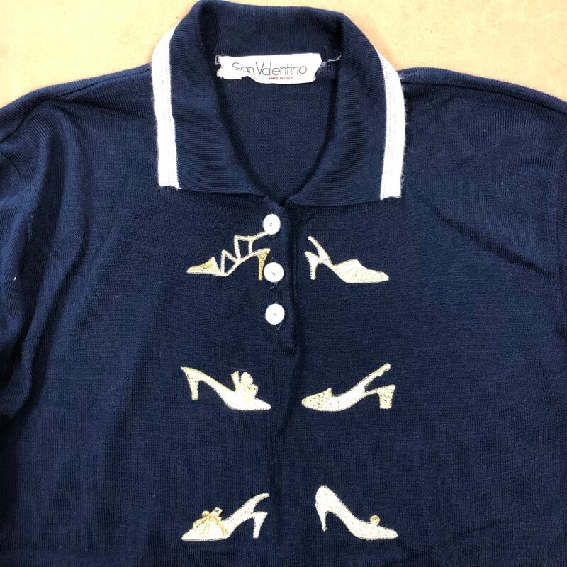 San Valentino ポロシャツ ニットポロ 刺繡 靴模様 ラインストーン ネイビー 42サイズ 2025081500018