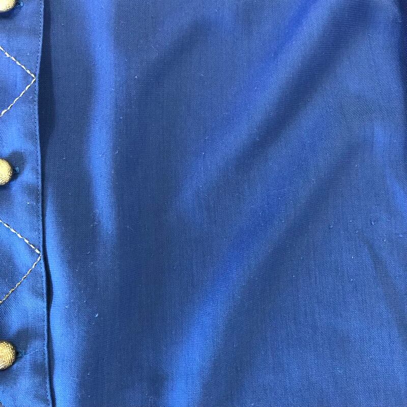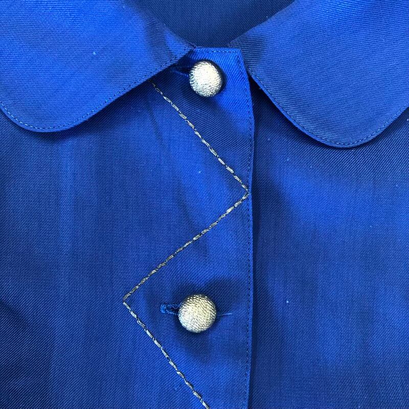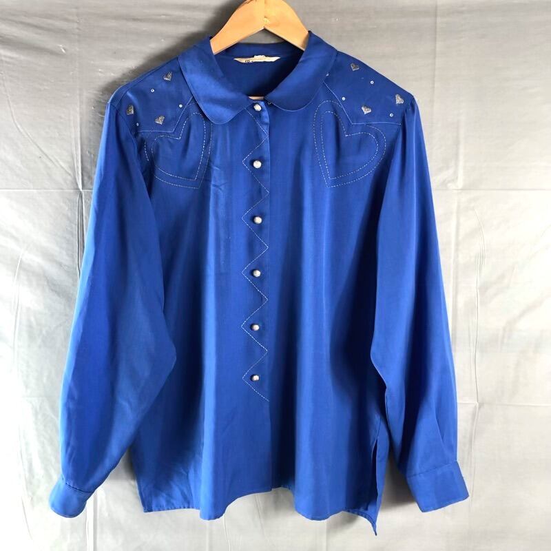 SAMANSA ブラウス 長袖 丸襟 ハートステッチ ビジュー 飾りボタン 薄手 ブルー系 Fサイズ 2025081500100