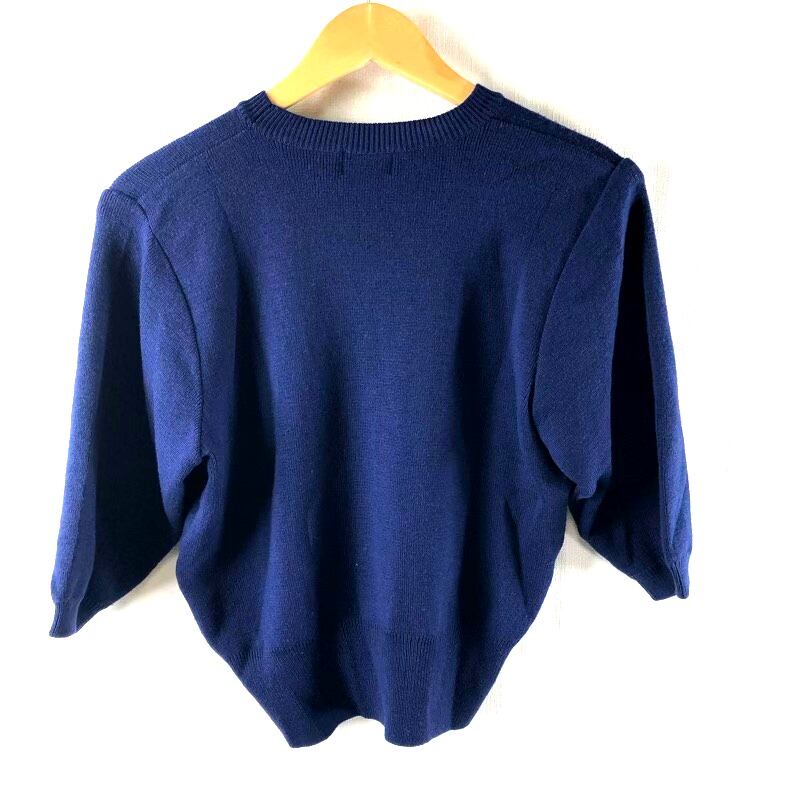 Vallis mall セーター ビジュー装飾 ラッパ Uネック 日本製 ネイビー 2025081600046