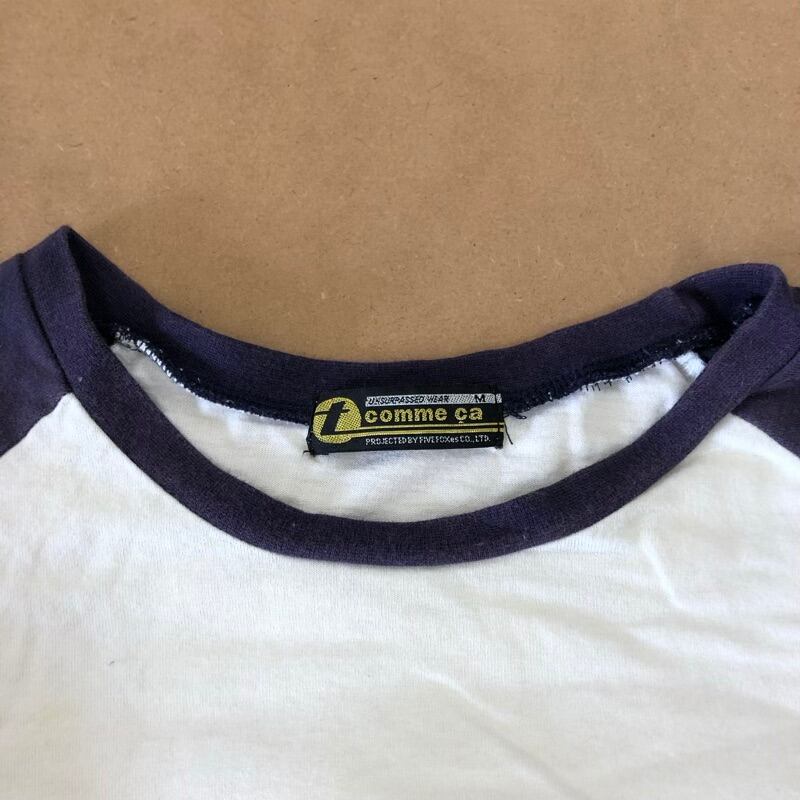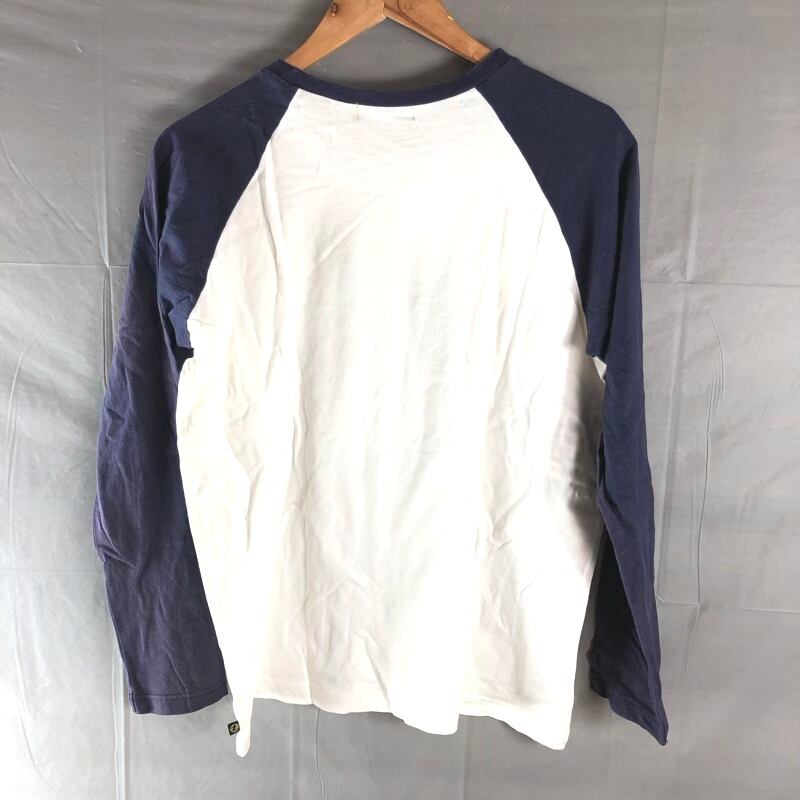 T comme ca Tシャツ プリント 英字 やじるし ツーカラー 裾ワンポイント 綿100% 長袖 紺 白 Mサイズ 2025081600435