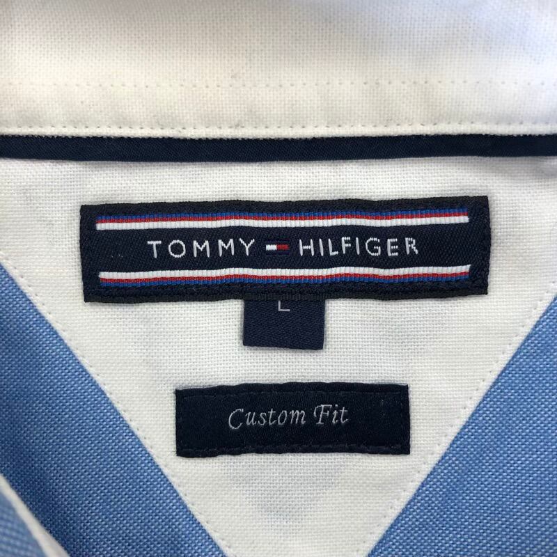 トミーヒルフィガー TOMMY HILFIGER シャツ 長袖 Yシャツ 胸ポケット ワンポイント刺繍 袖ボタン 水色 Lサイズ 2025081600497