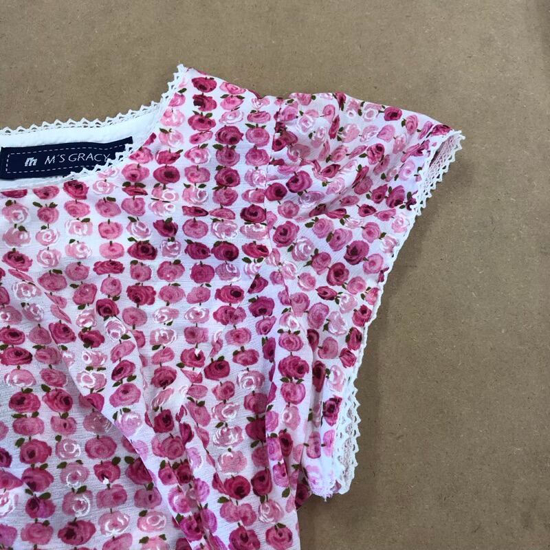 エムズグレイシー M'S GRACY ワンピース フレンチスリーブ 花柄 レース ギャザー フレア 日本製 ピンク系 38サイズ 2025082400065