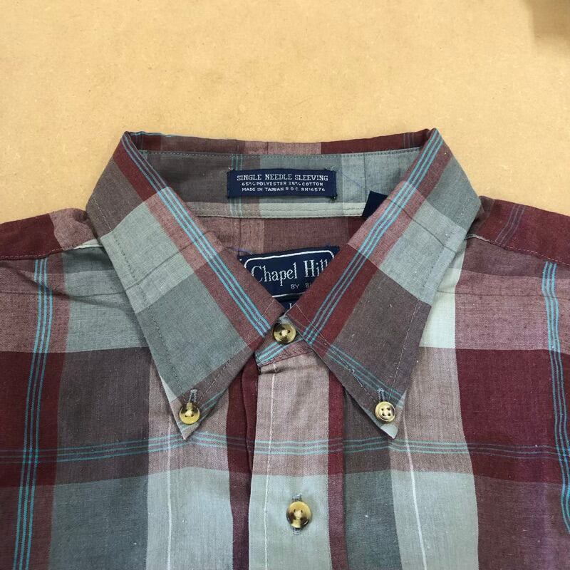 Chapel Hill BY BLOCK シャツ 長袖 チェック柄 ポケット ボタン グレー ボルドー系 Lサイズ 2025082400188