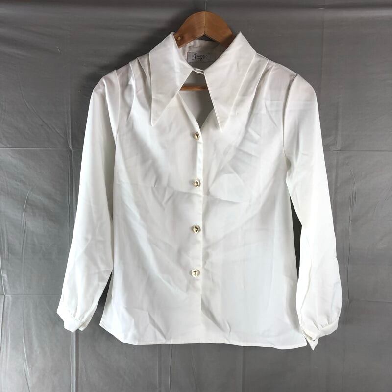 ブラウス 長袖 デザインネック ゴールドボタン 組成表示タグなし 白 Mサイズ 2025082400331