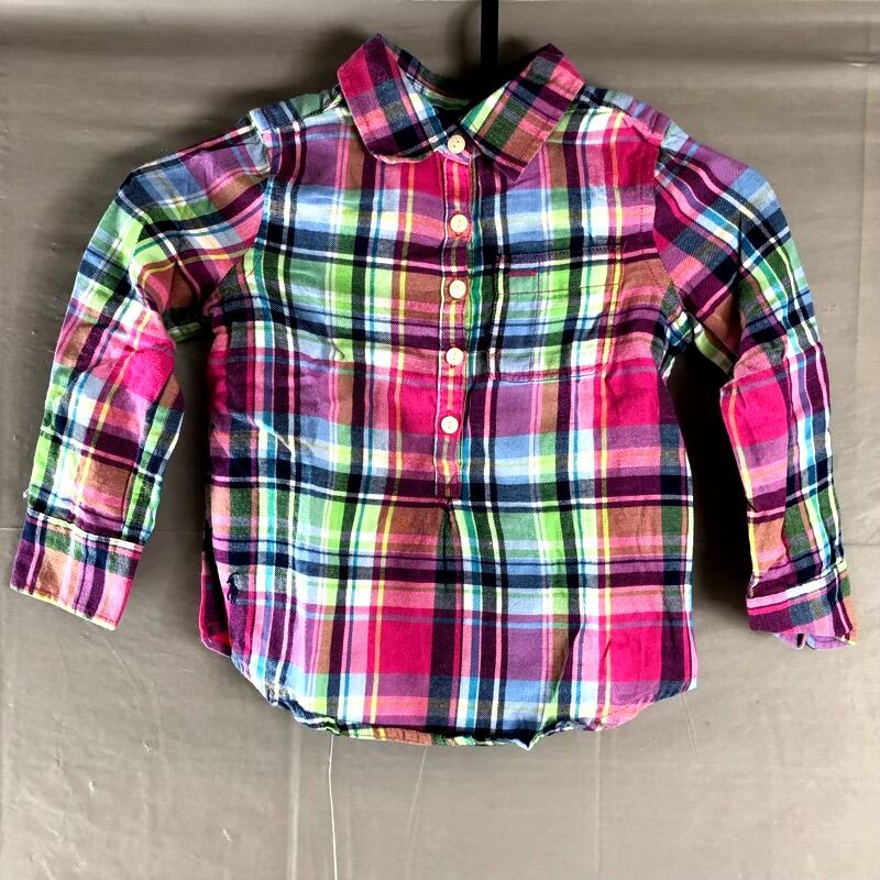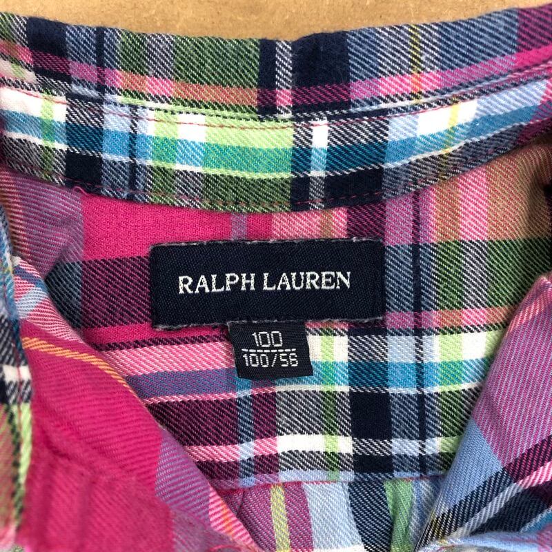 ラルフローレン Ralph Lauren シャツ キッズ 長袖 チェック ロゴ刺繡 ポケット コットン100% ピンク系 水色系 100センチ 2025082500079