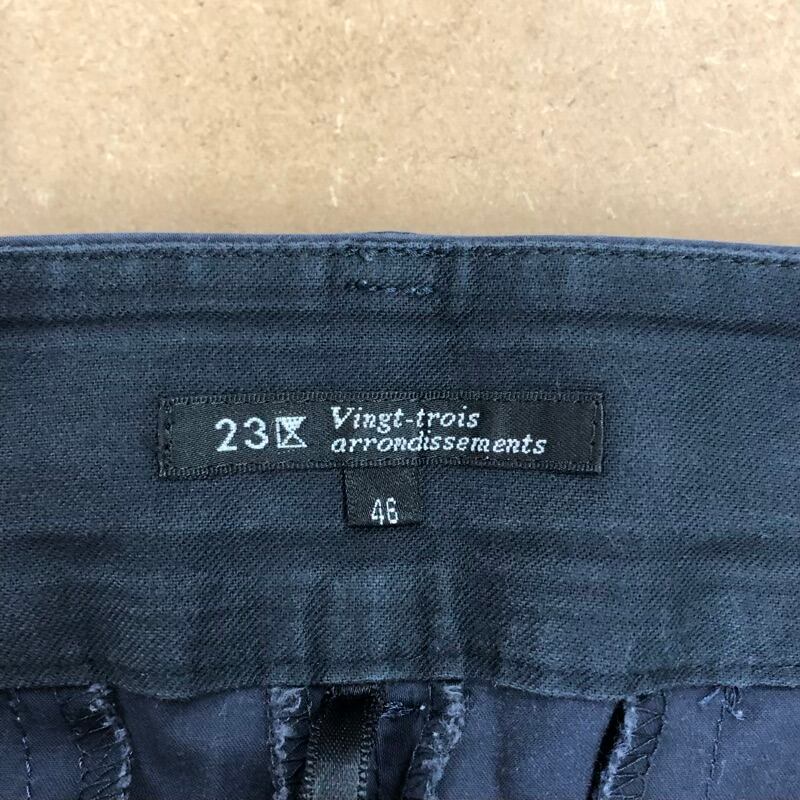 ニジュウサンク 23区 パンツ サイドポケット バックポケット チャック 裾スリット ネイビー 46サイズ 2025082600120