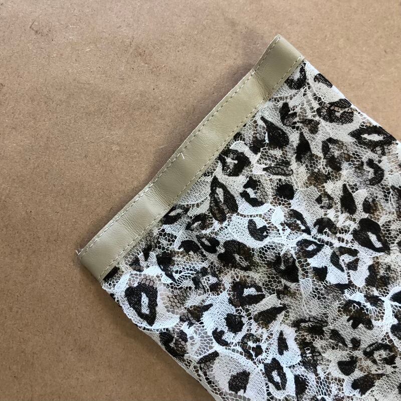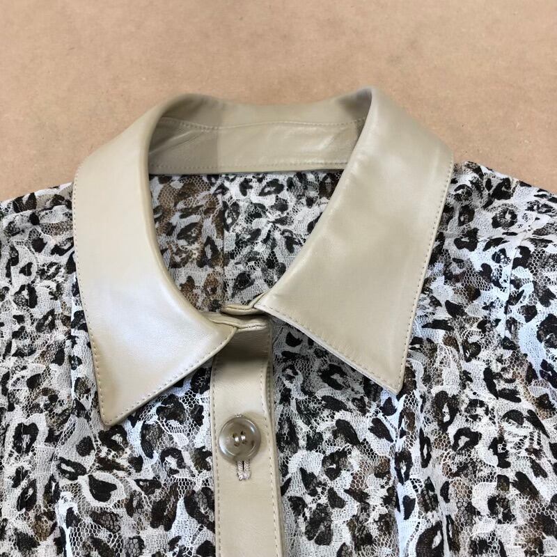 ワンピース ヒョウ柄 レース生地 シースルー素材 襟袖羊革 ボタン 日本製 ベージュ ブラウン LLサイズ 2025082600168