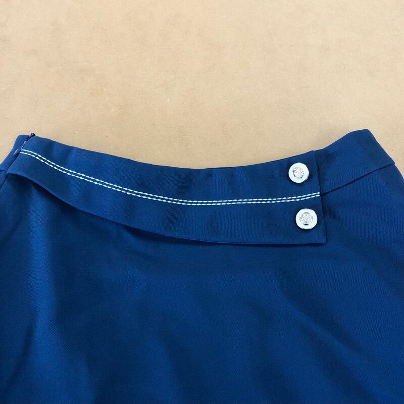 Lian Mu Sha スカート フレア デザインボタン ステッチ 裏地付き 青系 Mサイズ 2025082700028