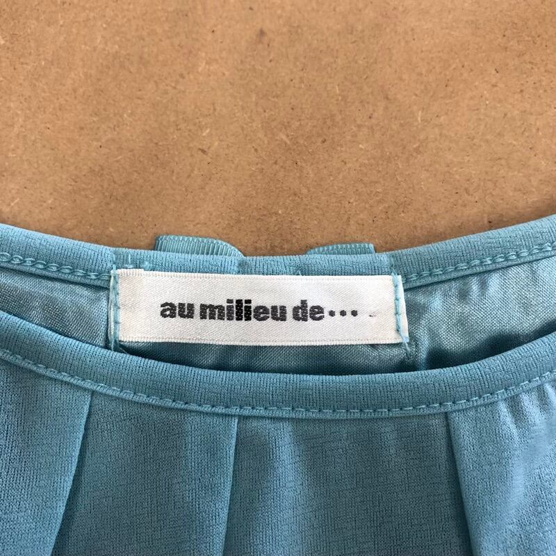 au milieu de... カットソー 半袖 タック バルーン裾 リボン 裏地付き ミントグリーン系 Lサイズ 2025082700240