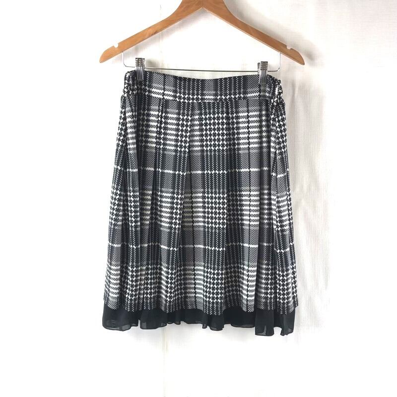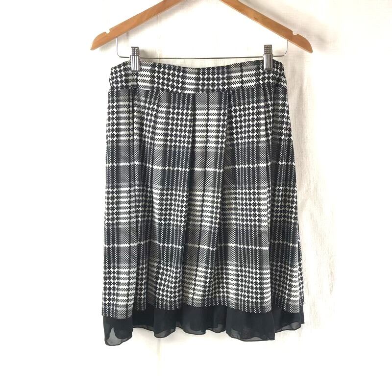 スカート チェック柄 タック フレア フリル 裏地付き 黒系 Lサイズ 2025082700394