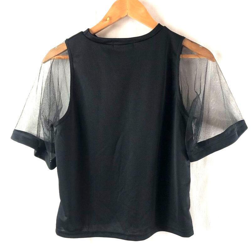 CHASE カットソー タグ付き 袖シースルー ラウンドネック 半袖 ブラック Lサイズ 2025082800063