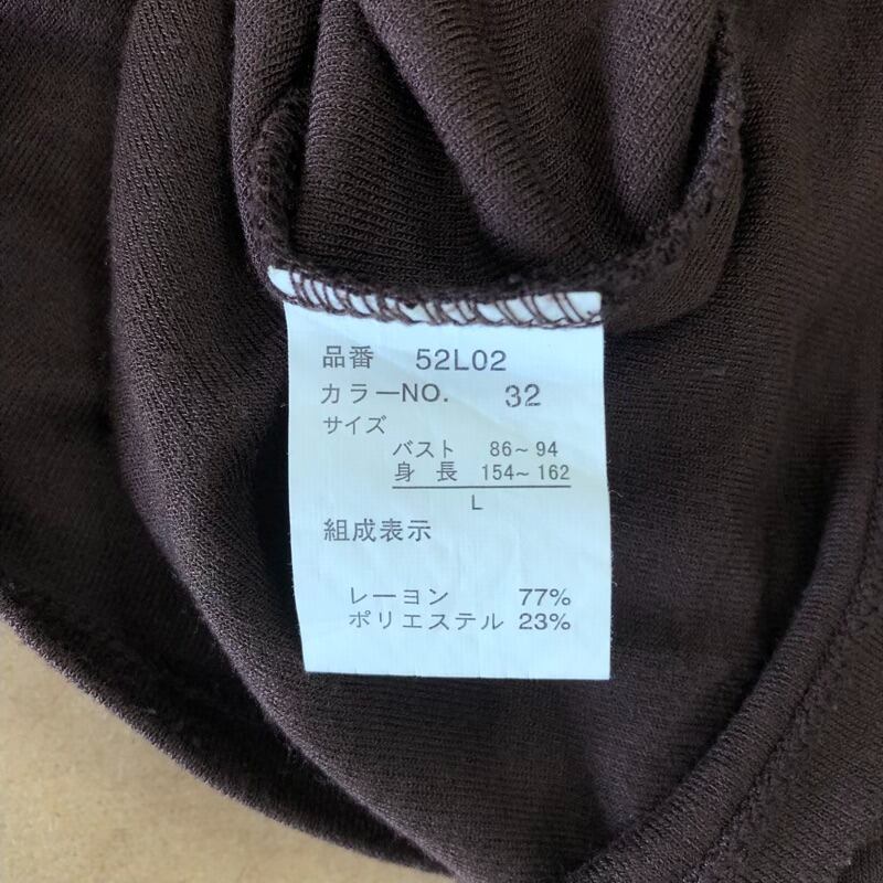 N.Y.OU カットソー フレンチスリーブ ドレープドネック ストレッチ ブラウン Lサイズ 2025082800094