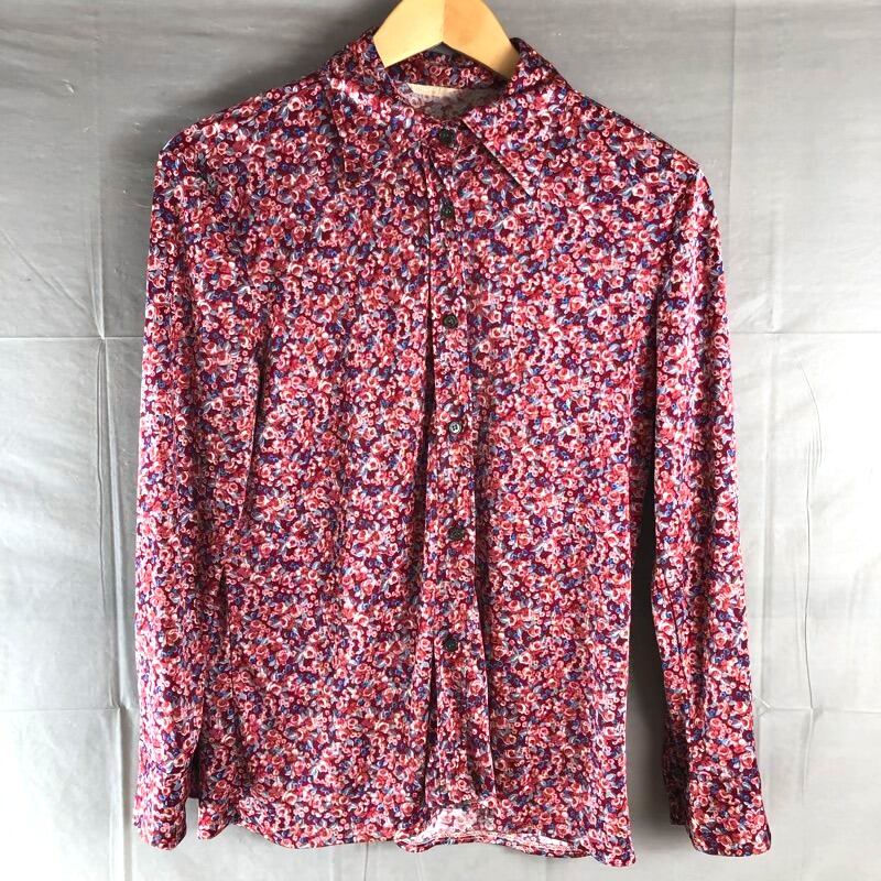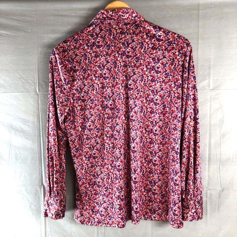 Plumeria ブラウス 長袖 小花柄プリント 昭和レトロ とろみ素材 レッド系 2025082800315