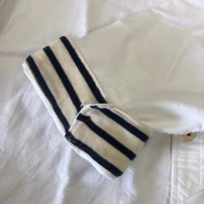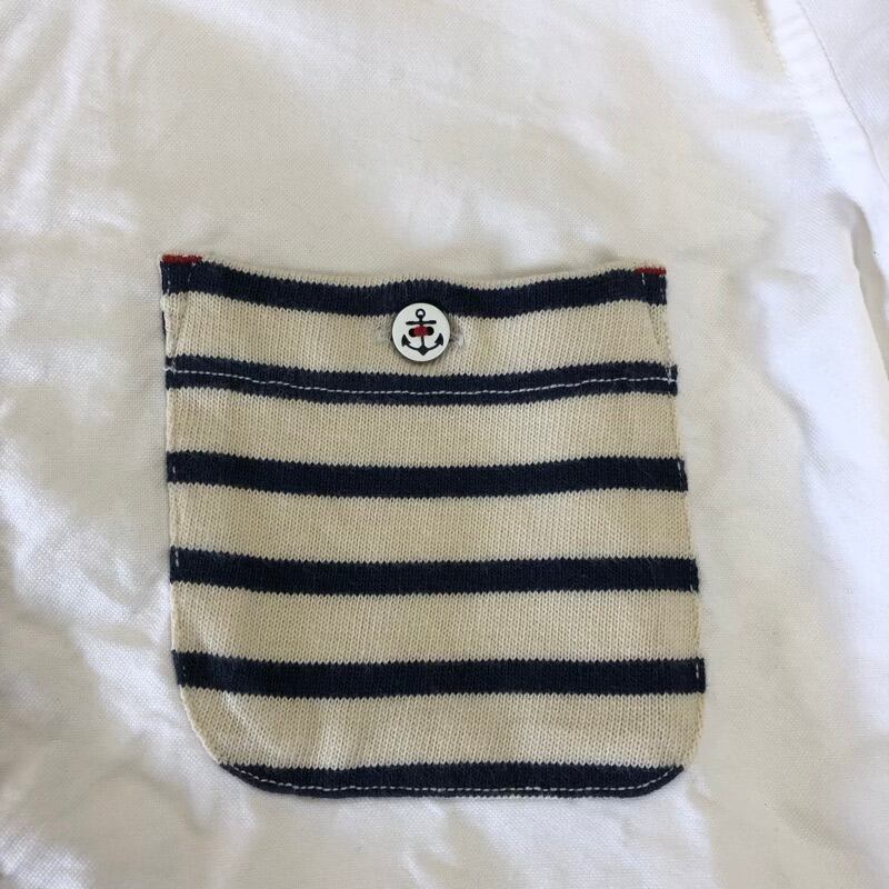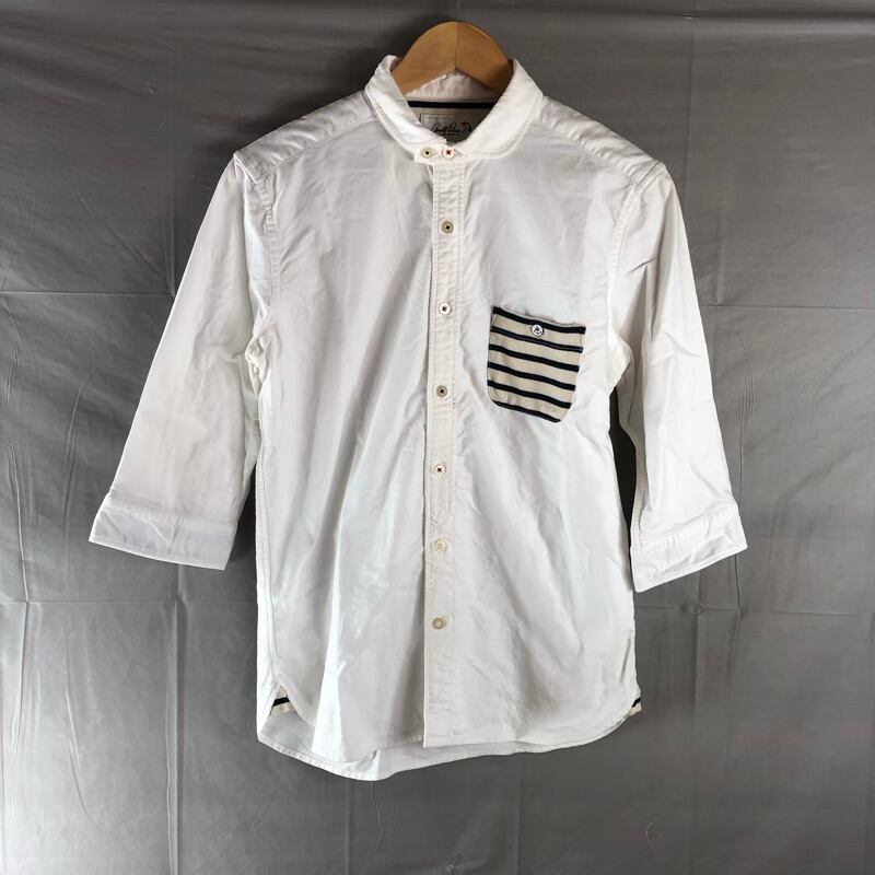 アーノルドパーマー Arnold Palmer シャツ 七分袖 デザインポケット ボーダー 刺繍 イカリマーク 綿100% 白系 2サイズ 2025083000080