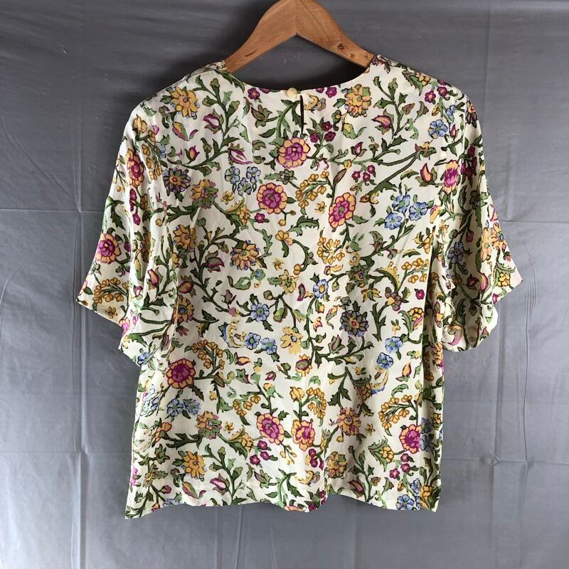 Healthy アンサンブル カットソー ジャケット 花柄 絹100% スリット裾 肩パッド 緑 黄色 クリーム色系 Lサイズ 2025083000097