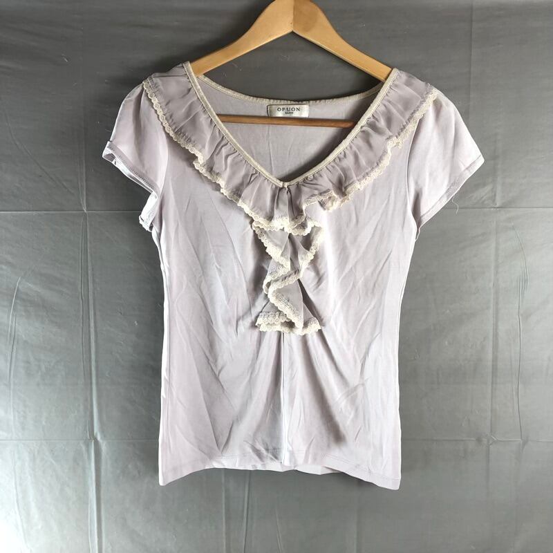 オフオン ofuon カットソー 半袖 Vネック フリル レース 薄紫系 38サイズ 2025083000202