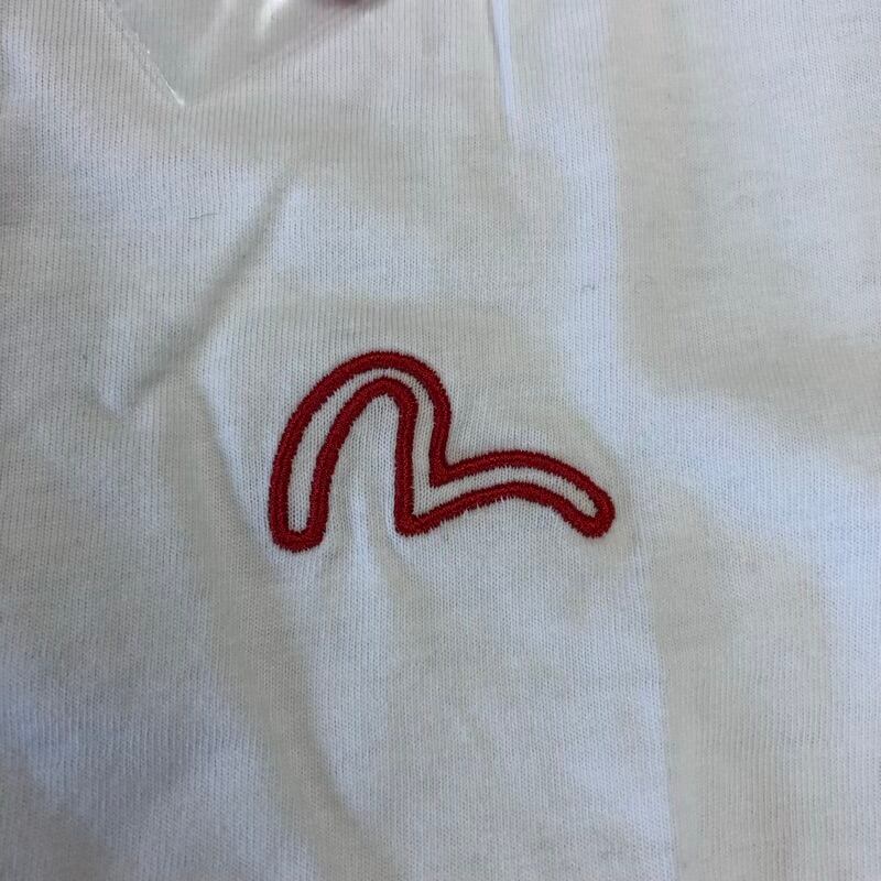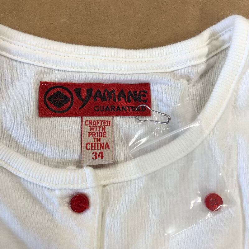 ヤマネ YAMANE エヴィス Tシャツ 半袖 ヘンリーネック ロゴ刺繍 デザインボタン 綿100% リブ 白 34サイズ 2025083000301