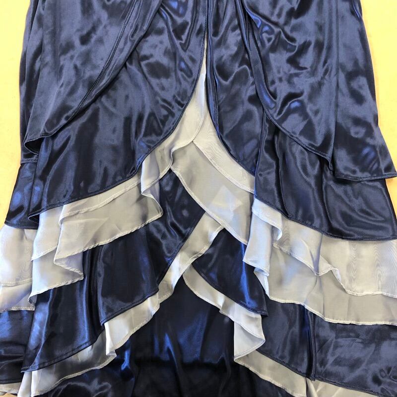 アシール ASHILL チュニック ノースリーブ フリル ティアードデザイン サテン ブルー系 38サイズ 2025083100223