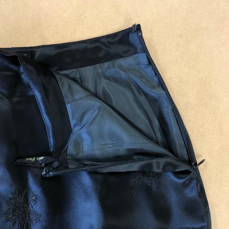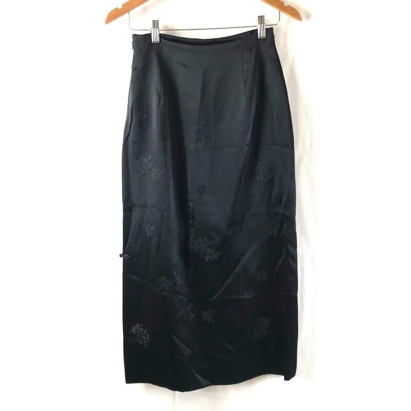 イタリヤ 伊太利屋 スカート ロング サテン生地 花刺繍 チャイナ風 裏地あり ブラック 9サイズ 2025083100261