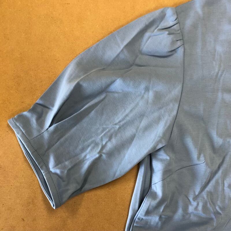 サロンピクシーハート SALON Pixie Heart カットソー カーディガン 半袖 パールボタン パフスリーブ ブルー系 くすみブルーMサイズ 2025083100308