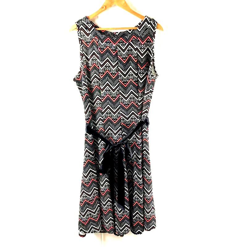 HAANI ワンピース ノースリーブ ロング 柄模様 リボン付き 黒系 2Xサイズ 2025090100148