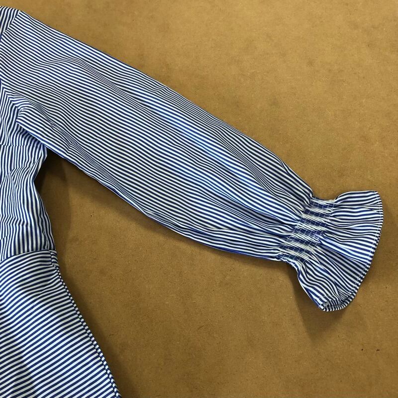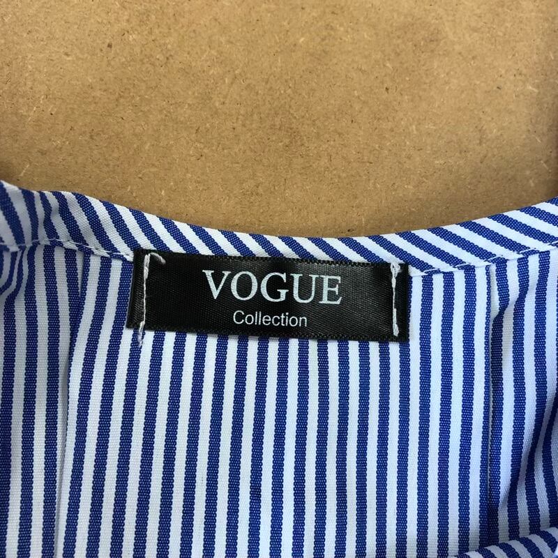 ヴォーグ VOGUE カットソー 長袖 ストライプ ペプラム デザイン袖 組成表示タグなし ブルー系 2025090200060