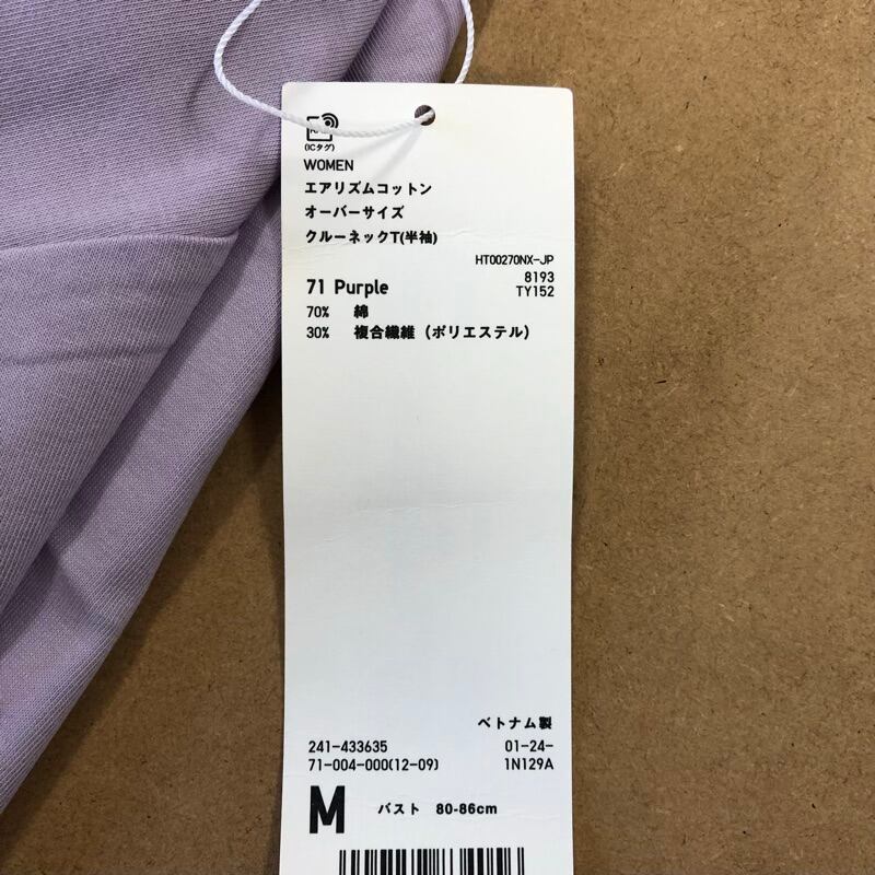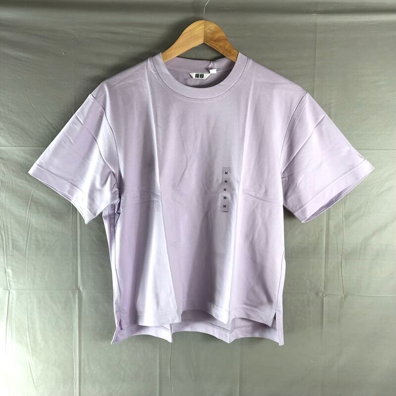 ユニクロ UNIQLO Tシャツ 半袖 クルーネック オーバーサイズ スリット裾 綿 タグ付き 薄紫 Mサイズ 2025090200183