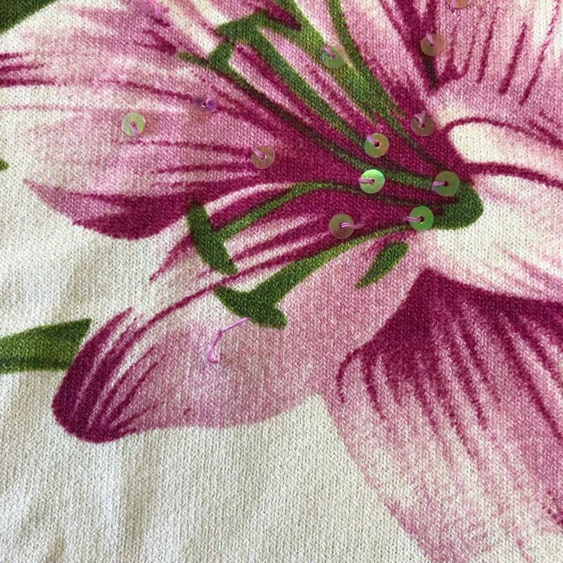 スーパービューティー super beauty カットソー 半袖 花柄 スパンコール ビーズ 装飾 リブ ピンク 緑 ライトベージュ系 44サイズ 2025090200244
