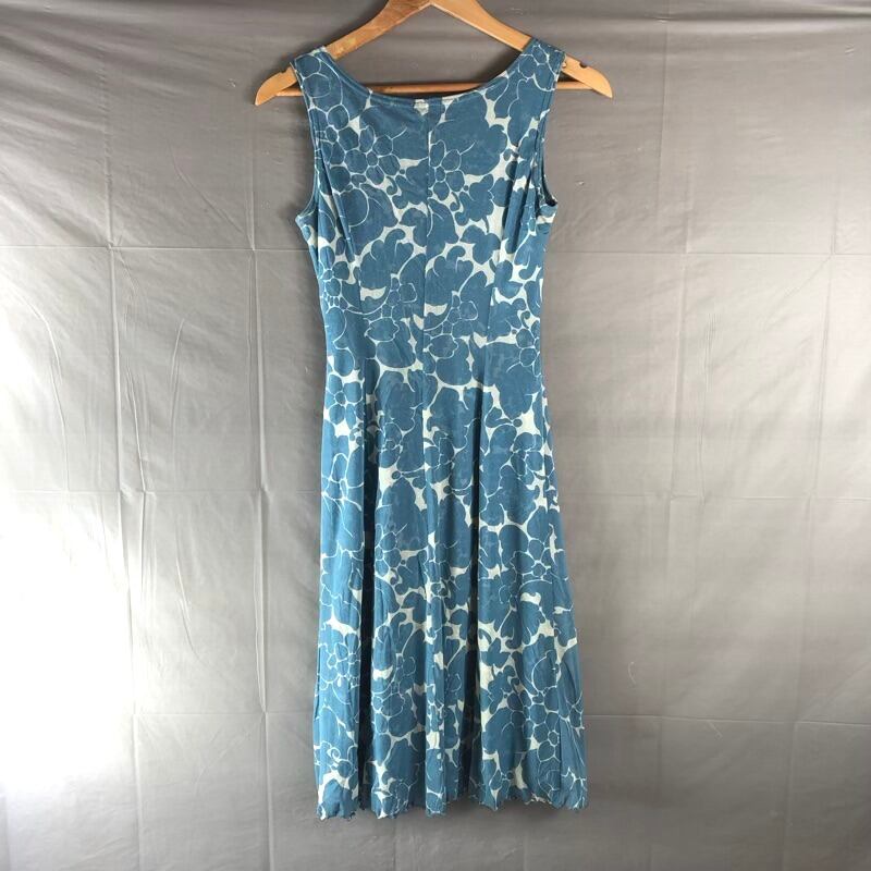 ルーニィ LOUNIE ワンピース ノースリーブ 柄模様 ギャザー スリット 裏地付き 日本製 水色 くすみブルー系 2025090200251