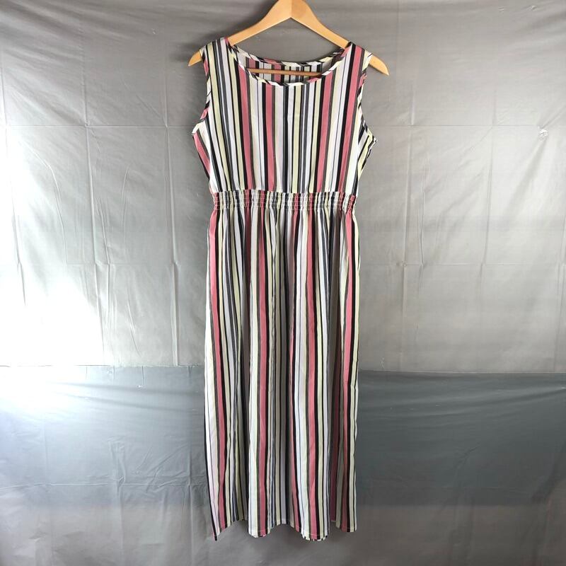 パークガール PARK GIRL ワンピース ロング 薄手 ノースリーブ ストライプ ウエストゴム 黄色 白 ピンク系 Mサイズ 2025090200343