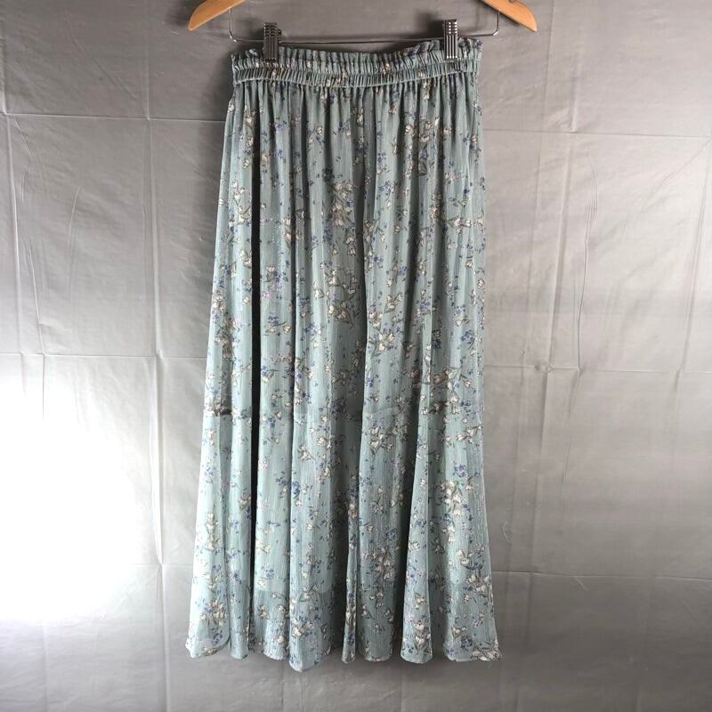 フェルゥ Feroux スカート ロング 花柄 フレア シフォン ウエストゴム 裏地付き くすみグリーン系 2サイズ 2025090200503