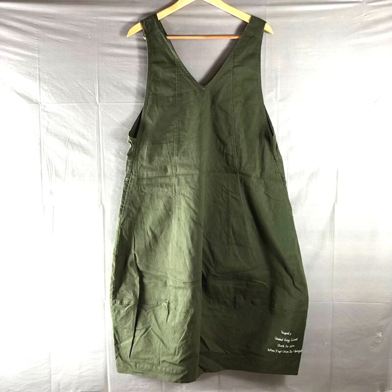 パーソンズ PERSON'S ジャンパースカート ロング デニム生地 英字刺繍 コクーンシルエット グリーン系 カーキ Lサイズ 2025090300036