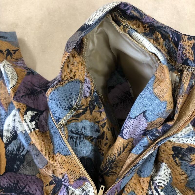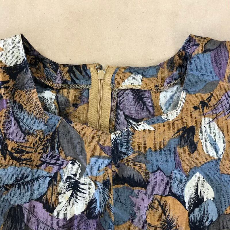 ワンピース 半袖 肩パッド 葉っぱプリント 裏地付き くすみカラー オレンジ系 パープル系 2025090300128