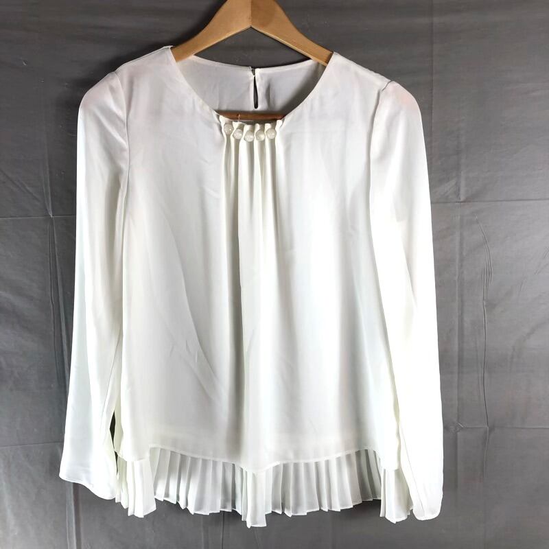 ジョルネア Giornea カットソー 長袖 襟装飾 ビジュー 裾プリーツ 日本製 オフホワイト 9サイズ 2025090400071
