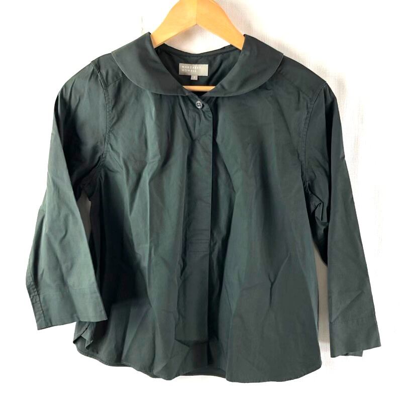 マーガレットハウエル MARGARET HOWELL ブラウス 長袖 コットンシルク混 替えボタン付き 日本製 カーキ Ⅱサイズ 2025090400392
