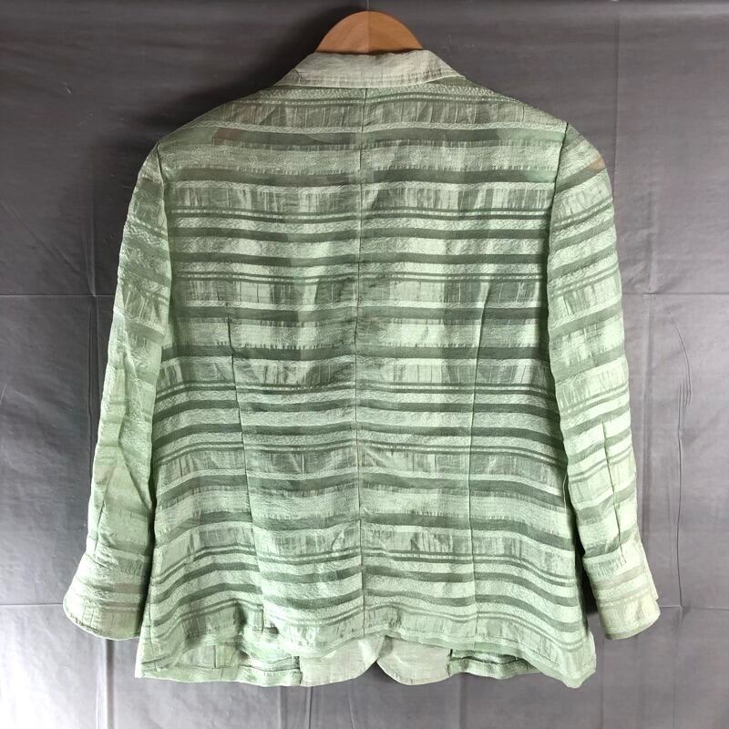 ノアジェ noa-ge ジャケット 丸襟 シアー素材 ボーダー ラインストーンボタン グリーン系 Mサイズ 2025090500276