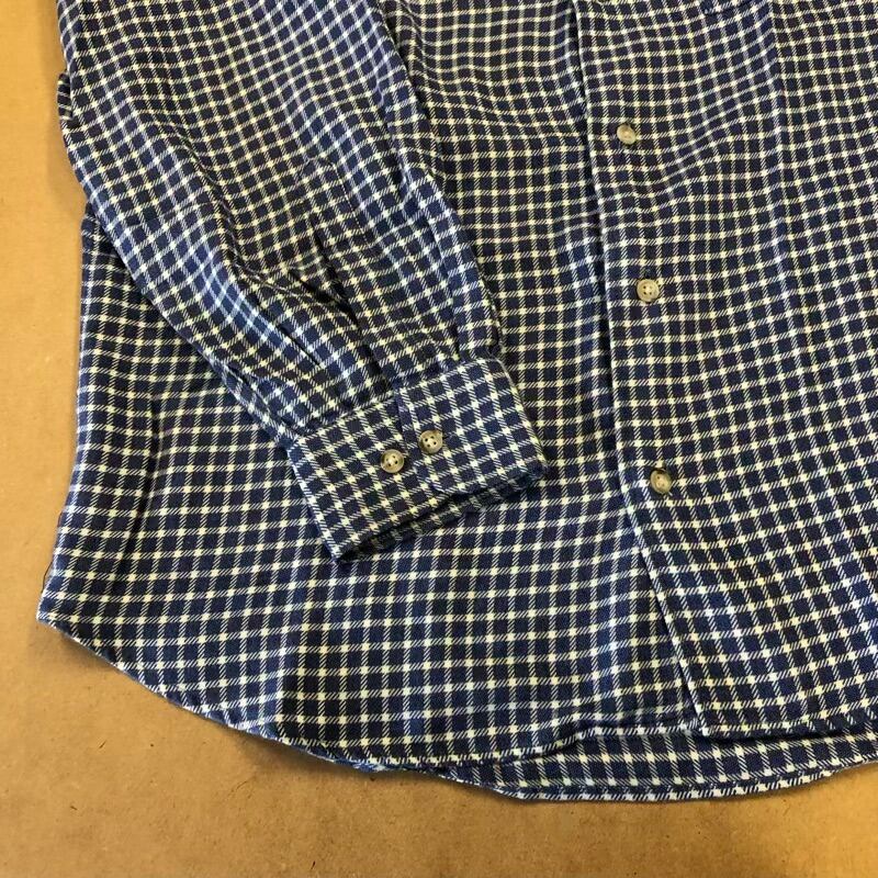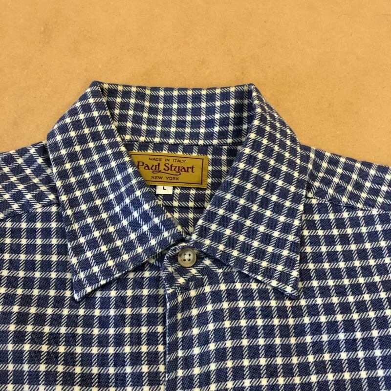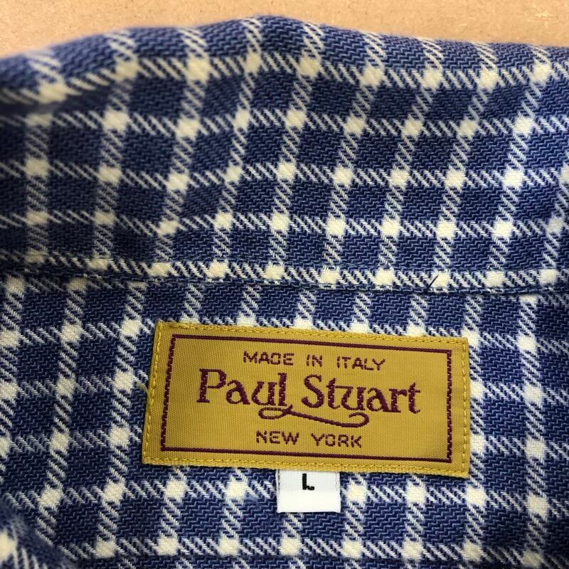 ポールスチュアート PaulStuart シャツ 長袖 チェック柄 格子柄 綿100% ポケット ブルー系 Lサイズ 2025090900304