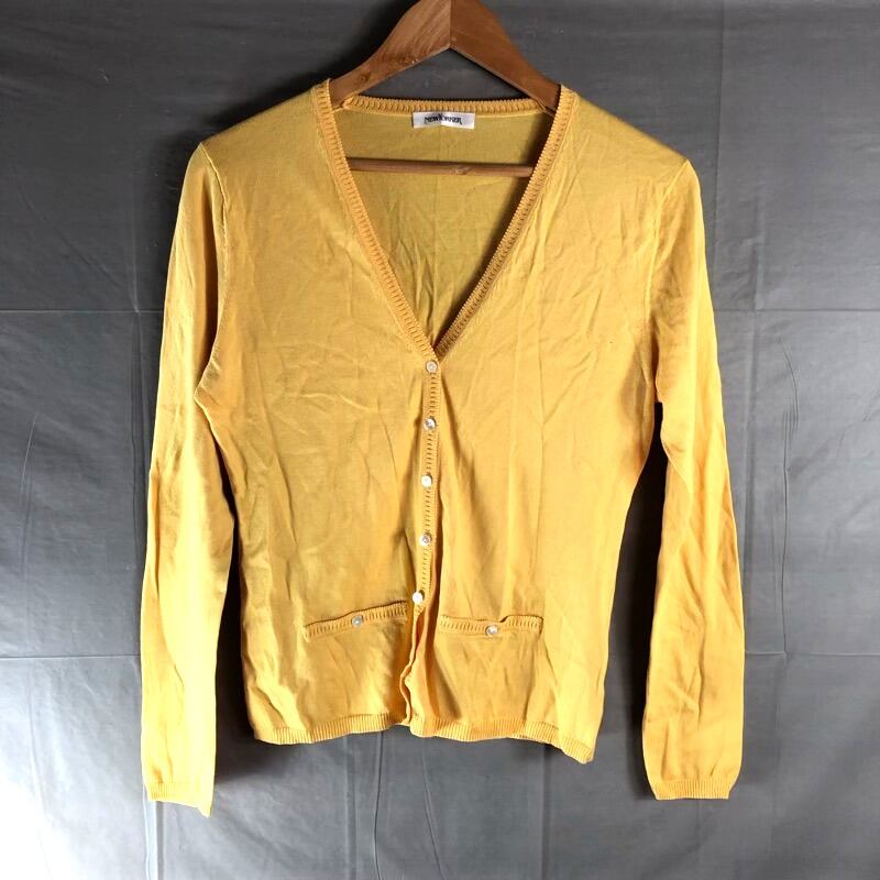 ニューヨーカー NEWYORKER カーディガン Vネック 前ポケット コットン100% イエロー Lサイズ 2025091000096