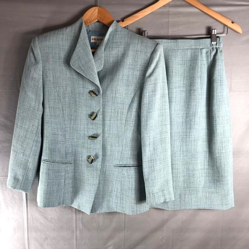 ALPHA COLLECTION セットアップ スーツ ジャケット スカート 裏地付き ボタン スリット サイドポケット グリーン系 9サイズ 2025091100031
