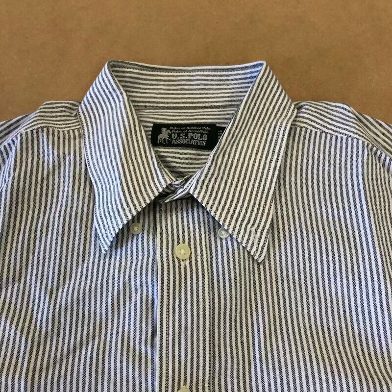 U.S. Polo Association シャツ Yシャツ 長袖 ストライプ 胸ポケット ワンポイント グレー 白 Lサイズ 2025091100185