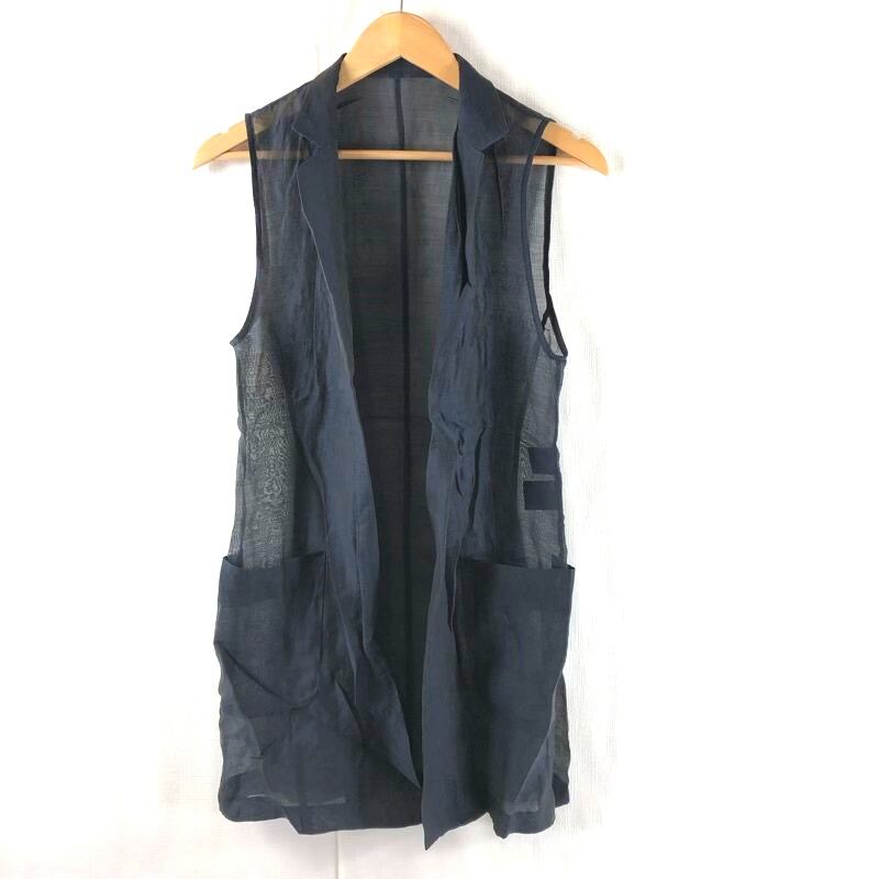 バジーレベントット BASILE28 ジレ 薄手 シースルー 麻 ポケット ネイビー 40サイズ 205033000177
