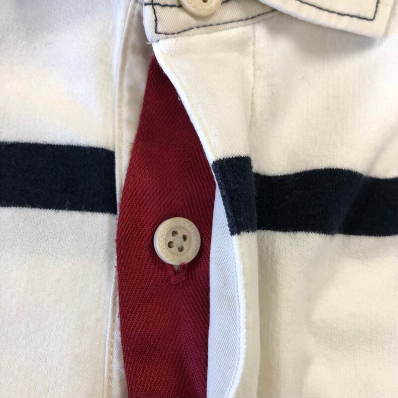 ラコステ LACOSTE ポロシャツ 長袖 ボーダー ロゴ刺繍 綿100% 紺 白系 Lサイズ 2025091200175