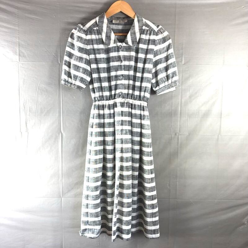 レオノーブル REONOBLE オンワード ワンピース 半袖 ボーダー 昭和レトロ ホワイト系 グレー系 Lサイズ 2025091000201