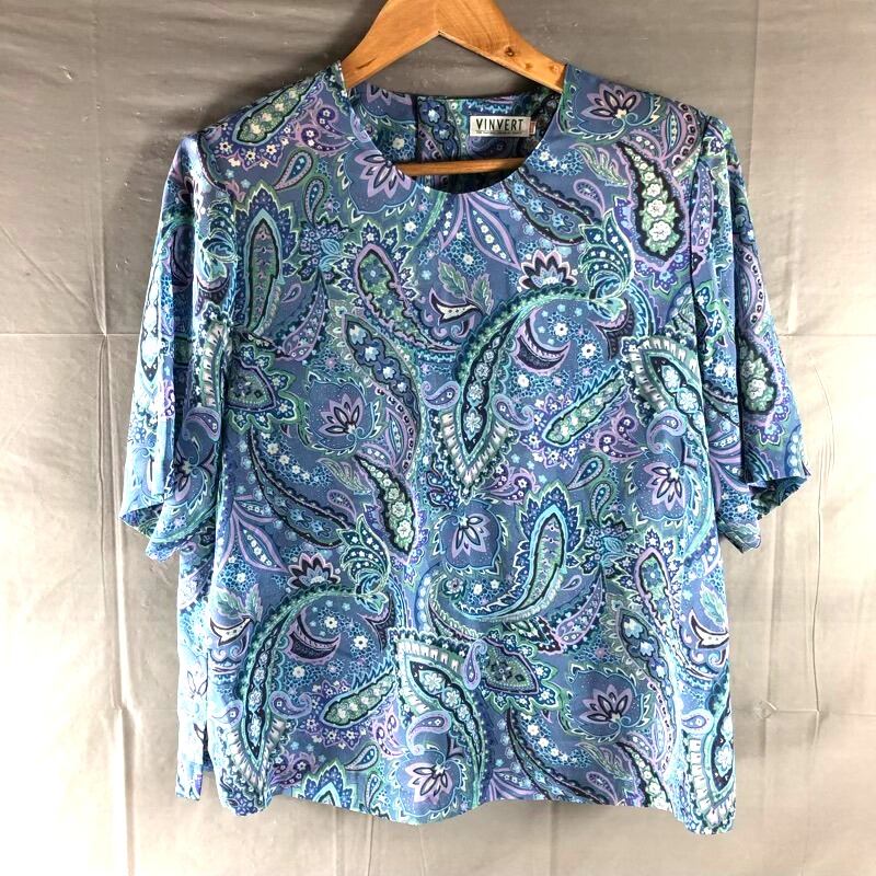 バンベール VINVERT カットソー エスニック柄 ラメ 肩パット 半袖 ブルー系 15ABRサイズ 2025091300011