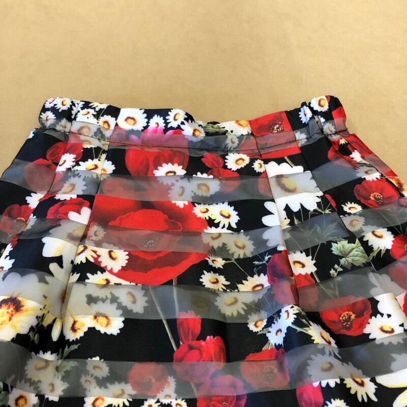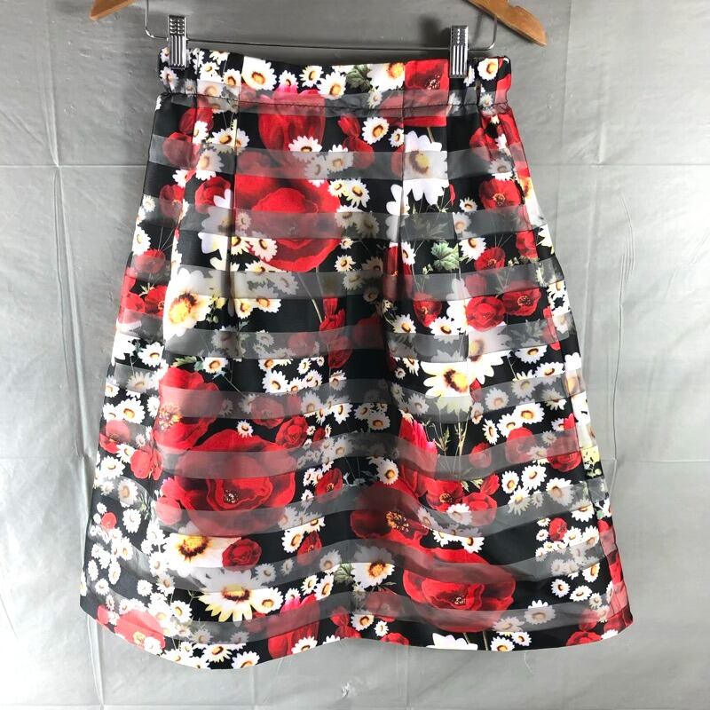 Double スカート 花柄 ウエストゴム入り ストライプ ファスナー 赤 黒 白 38サイズ 2025091300028