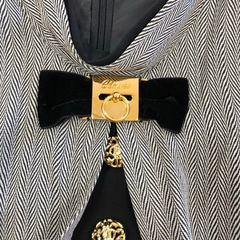 ラボーロ LA VORO ワンピース レイヤード風 ゴールドボタン リボン ブラック系 ベージュ系 9ARサイズ 2025091000249