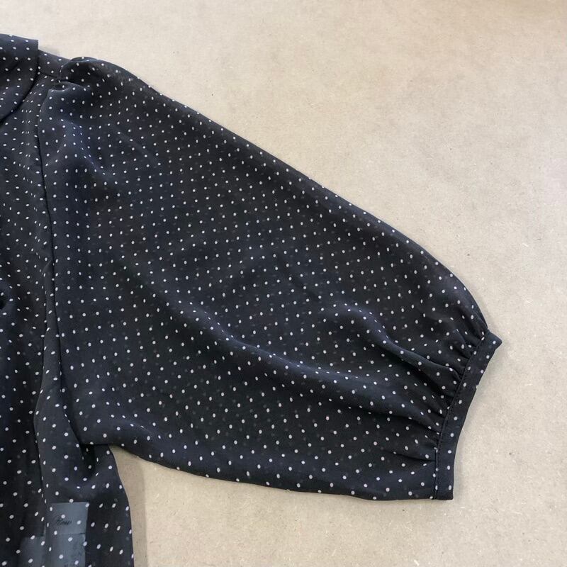 カットソー リボン 水玉 レース ボタン シースルー ブラウン系 38サイズ 2025091400131