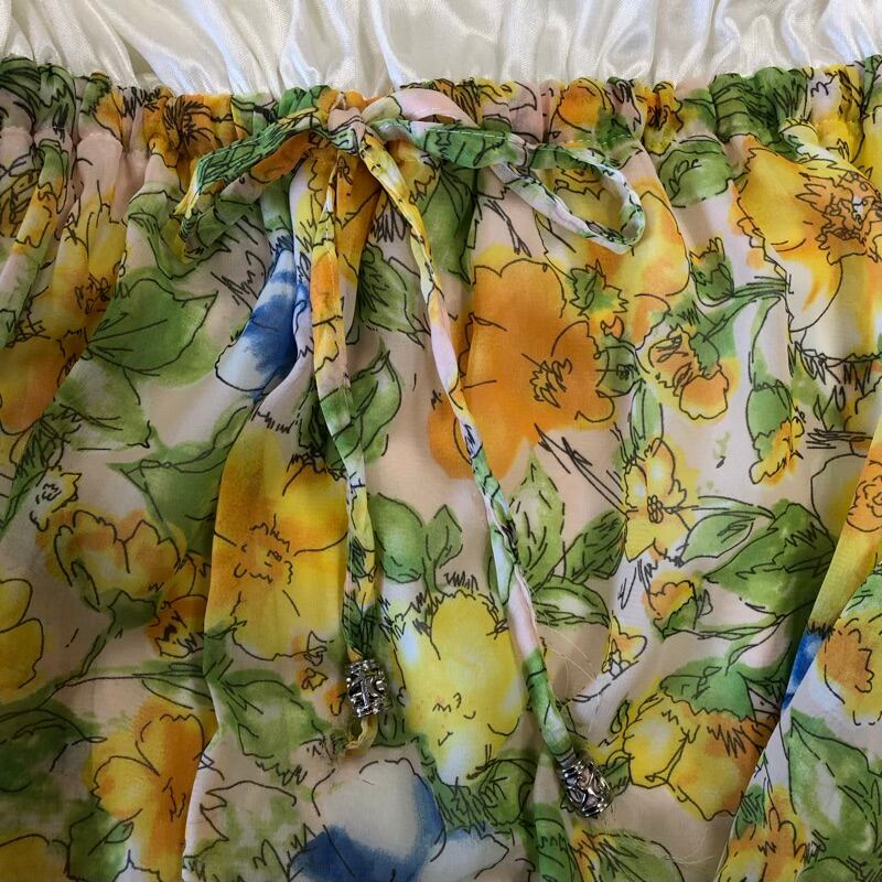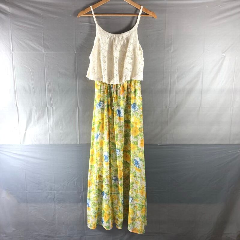 ハドソン Hudson honey ワンピース キャミソールワンピース レース 花柄 リボン紐 綿 裏地付き 白 黄色 黄緑系 Lサイズ 2025091400056