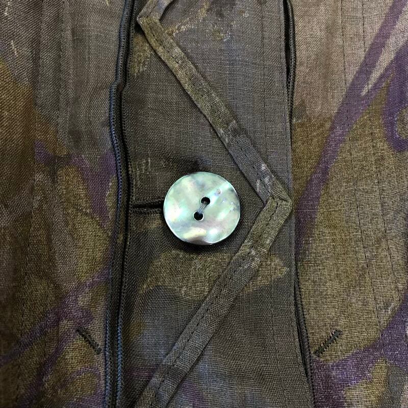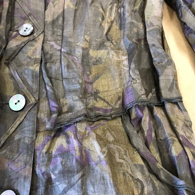 ビルダジュール Ville dazur チュニック 麻100% 柄模様 フリル デザインボタン ポケット 肩パッド タグ付き ブラウン系 44サイズ 2025091400162