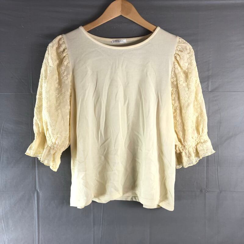 グラシア GLACIER カットソー 七分袖 レース パフスリーブ 綿 黄色系 Mサイズ 2025091400193